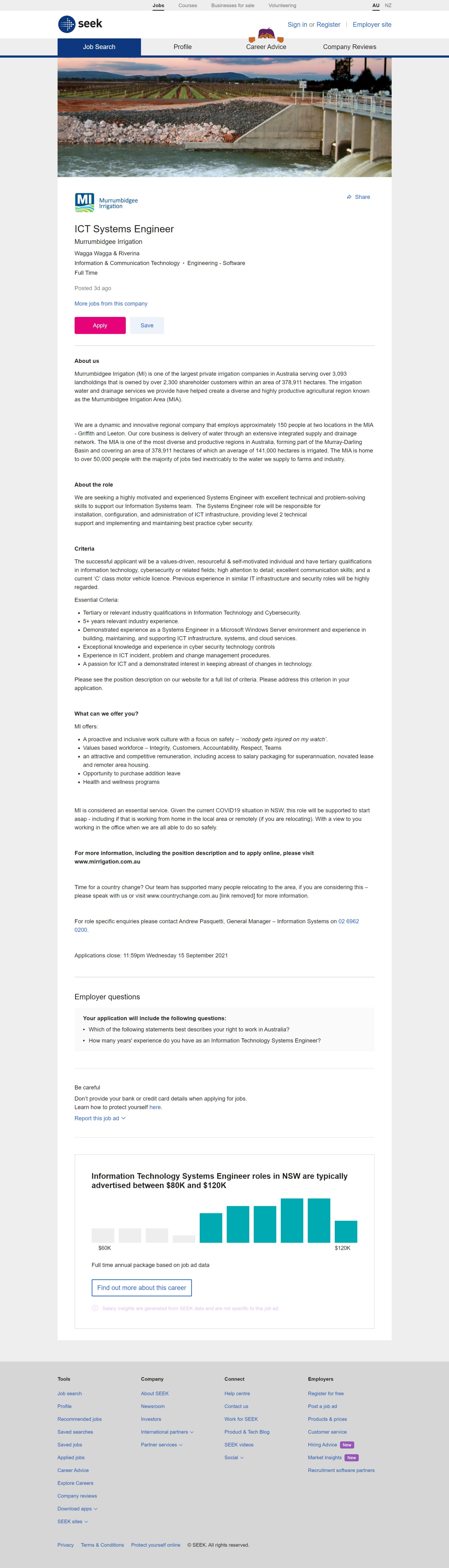 Murrumbidgee Irrigation as an ICT Systems Engineer!